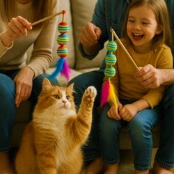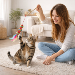 Diseñado con una varilla tipo caña de 40 cm, este juguete es perfecto para que los gatos saltarines puedan satisfacer su instinto de caza y ejercicio.